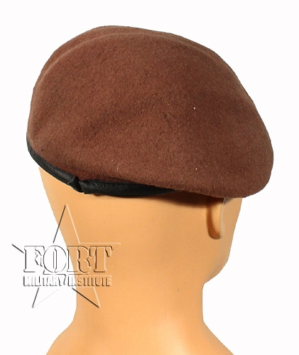 Oryginalny, kontraktowy, beret brytyjski w kolorze brązowym.