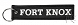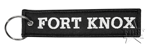 Breloczek z haftowanym napisem FORT KNOX na obydwu stronachoraz z metalowym kółkiem np. do kluczy - o średnicy 4 cm.