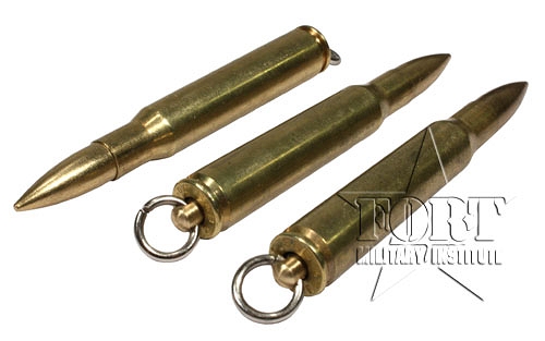 Breloczek wykonany z prawdziwego naboju .30-06 Springfield (.30-06 US Service, 7,62 x 63 mm). Amerykański nabój karabinowy stosowany od 1906 roku. Wycofany z armii w latach 50 XX wieku, jest stosowany do dziś jako amunicja do broni kolekcjonerskiej, myśliwskiej i sportowej. W miejscu spłonki uchwyt z kółeczkiem.