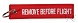 na jednej stronie, a na drugiej napis REMOVE BEFORE FLIGHT (RBF Tag).