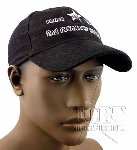 Czarna czapka z daszkiem z napisami KOREA '50-'53, 2nd Infantry Division i emblematem jednostki. Czapka w kolorze czarnym, wykonana z wysokiej jakości bawełny. Rozmiar uniwersalny, regulacja obwodu, 6 otworów wentylacyjnych.