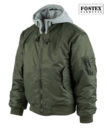 Wygodna nieprzewiewna kurtka Hooded Bomber Jacket typu MA1 z kapturem,