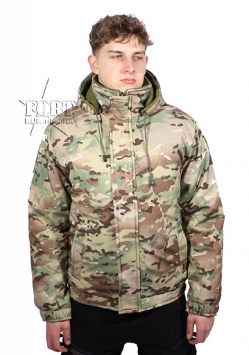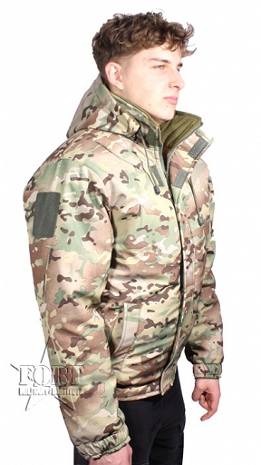 Kurtka Soft Shell ocieplana z odpinanym kapturem w kamuflażu multi.