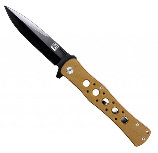 Metalowa rękojeść G10 w kolorze pustynnym coyote.