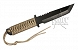 Nóż wykonany z jednego kawałka stali. Rękojeść opleciona nylonową linką.