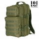 Plecak dwukomorowy. Komora główna o wym. 46 x 24 x 10 cm, druga komora o wym. 40 x 20 x 8 cm. Dwie kieszenie zewnętrzne o wymiarach 27 x 20 x 8 cm i 10 x 19 x 8 cm. cm. Obydwie komory i kieszenie zewnętrzne zapinane są na zamki błyskawiczne. Wewnątrz komór naszyte są dodatkowe kieszonki. Od strony pleców umieszczona jest zapinana na rzep kieszeń zewnętrzna, przystosowana do transportu wkładu camelbak. Szerokie, miękkie, regulowane szelki zapewniają komfort noszenia. Miękka wyściółka pleców. Troki po bokach i na spodzie plecaka umożliwiają dopasowanie go do wymiarów transportowanego ładunku. Troki można wykorzystać również do zamocowania np. karimaty. Po bokach plecaka i na kieszeniach zewnętrznych są taśmy montażowe kompatybilne z systemem ALICE i MOLLE, do zamocowania dodatkowego wyposażenia np. manierki, carga.