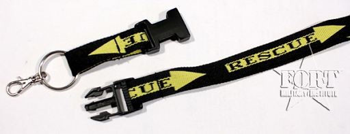 Kolor czarny z żółtą strzałką napisem Rescue.