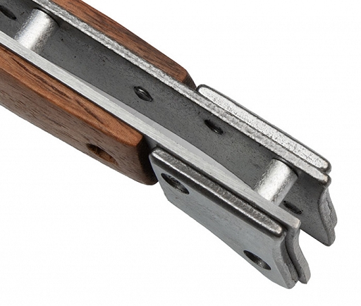 Niewielkie rozmiary pozwalają, by nóż był zawsze pod ręką np. w kieszeni, w plecaku czy w schowku samochodowym. Mechanizm sprężynowy automatycznie otwiera ostrze po przyciśnięciu włącznika. Bagnet sprężynowy otwiera się wyjątkowo płynnie i szybko. Blokada plunge lock zabezpiecza wysunięte ostrze przed niechcianym schowaniem, a w pozycji zamkniętej blokuje przycisk startowy, zapobiegając samoistnemu otwarciu. Wykonana z aluminium i drewna rękojeść jest bardzo wygodna i ergonomiczna.