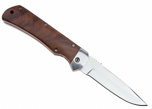 Solidny nóż sprężynowy automatyczny, stworzony do codziennego użytku EDC (Every Day Carry). Łączy w sobie funkcjonalność, szybki mechanizm i wysoką jakość wykonania, gwarantując niezawodność w każdych warunkach. Ostrze wykonano ze stali nierdzewnej 420, znanej z odporności na korozję i łatwości ostrzenia. Głownia o profilu Clip Point posiada gładkie ostrze oraz karbowanie na grzbiecie, które ułatwia pracę wymagającą użycie większej siły. Ergonomiczna rękojeść ze stali obłożonej drewnem zapewnia pewny i komfortowy chwyt. W rękojeści znajduje się otwór do przewleczenia linki oraz dźwignia uruchamiająca mechanizm sprężynowy. Otwieranie noża jest szybkie, intuicyjne i możliwe jedną ręką. System sprężynowy pełni również funkcję blokady, chroniąc ostrze przed przypadkowym zamknięciem. W zestawie znajduje się czarny pokrowiec z mocowaniem na pasek, który ułatwia przenoszenie noża.