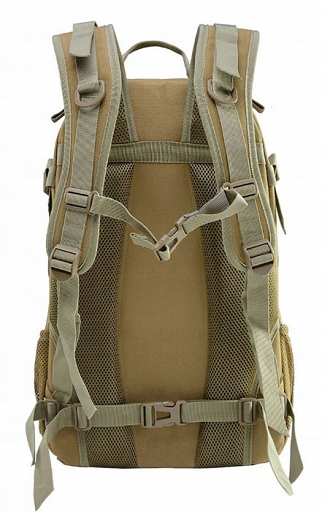 Lekki plecak taktyczny w kolorze pustynnym coyote. Pojemność ok. 35 litrów.