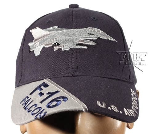 Z przodu haftowany wizerunek myśliwca F-16, na daszku napis