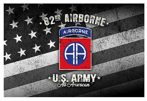 Stylizowana flaga USA z emblematem U.S. 82nd Airborne Division.