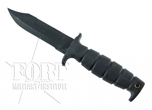Czubek jest obosieczny, górna część ostrza wyposażona jest w piłkę. Ostrze czernione,