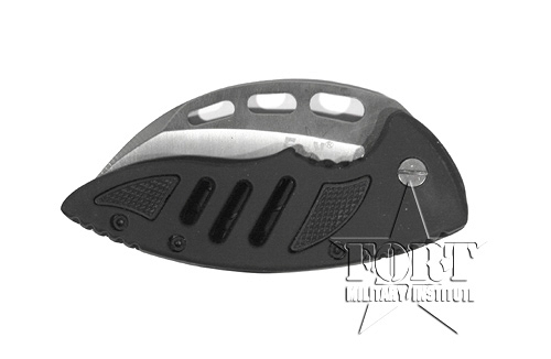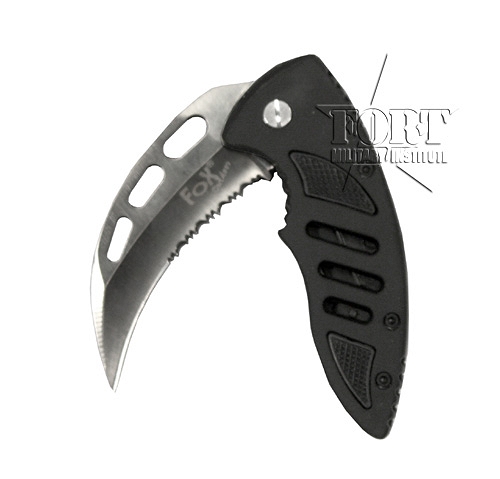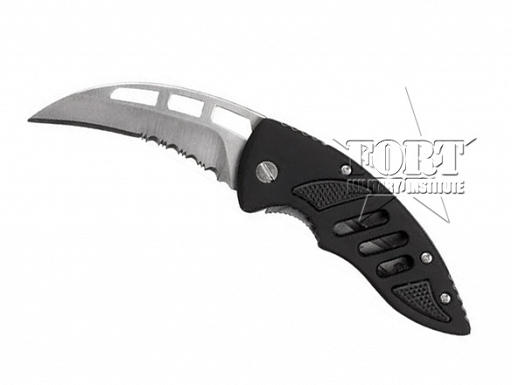 Niewielki nóż z częściowo ząbkowanym ostrzem z blokadą.
