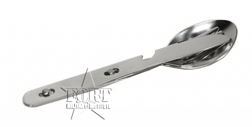 Trzyczęściowy stalowy niezbędnik Camping. Łyżka, widelec i nóż złożone razem.