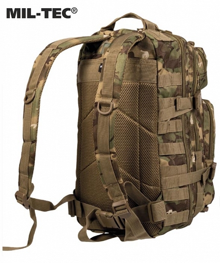 Plecak Assault Small. Wygodny i praktyczny plecak w kamuflażu multi. Pojemność około 20 litrów.