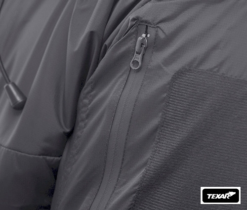 Regulacja kaptura, rękawów i dolnej części. Otwory