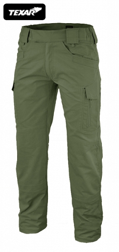 Zachowując cywilny wygląd są użyteczne w warunkach bojowych. Doskonale sprawdzają się w warunkach miejskich i terenowych. Wygodne spodnie z praktycznymi, wielofunkcyjnymi kieszeniami. Szerokie szlufki zapewniają utrzymanie ciężkiego pasa. Boczne ściągacze pozwalają na dokładne dopasowanie do talii. Materiał nie krępuje ruchów ciała - brak efektu tzw. wypychania materiału na kolanach, w kroku i na pośladkach. Spodnie zapinane na listwę z rzepem dającą razem z elastycznymi bocznymi ściągaczami możliwość regulacji w pasie. Rozporek zapinany na suwak. 11 kieszeni - dwie klasyczne na biodrach, dwie kieszenie boczne cargo na udach zamykane na rzep i naszyte na nich dwie wąskie kieszonki zapinane na zamek i dwie otwarte. Dwie tylne kieszenie zapinane na rzep oraz jedna wewnętrzna kieszonka. Dodatkowo wewnętrzne kieszenie na nakolanniki.