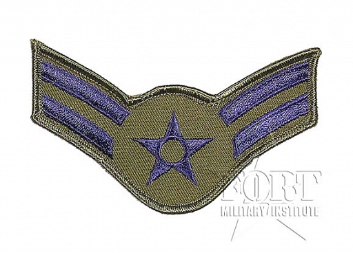 Oryginalna naszywka United States Air Force Rank Patch. Stopień Airman First Class, A1C, E-3 (kod NATO - OR-3). Odpowiednik polski - brak.
