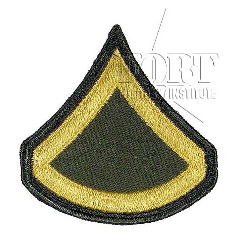 Oryginalna naszywka US Army Rank Patch do munduru wyjściowego. Stopień Private First Class PFC, E-3 (kod NATO - OR-3). Odpowiednik polski - brak.