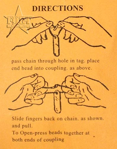 Cena dotyczy kompletu dwóch łańcuszków, dwóch gumek i dwóch blach z wybitymi twoimi danymi.