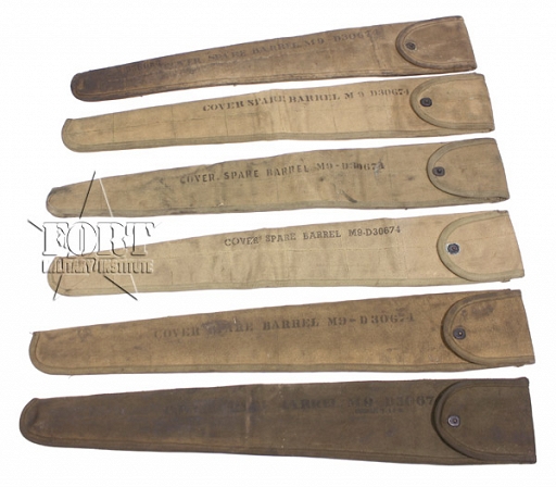 Oryginalny pokrowiec M9-D30674 na zapasową lufę z okresu II Wojny Światowej do ciężkiego karabinu maszynowego Browning M1919, który był szeroko stosowany w różnych jednostkach armii amerykańskiej. Pokrowce były m. in. na wyposażeniu czołgów i transporterów opancerzonych Wykonany z grubego płótna (canvas), zamykany na klapkę z zatrzaskiem.