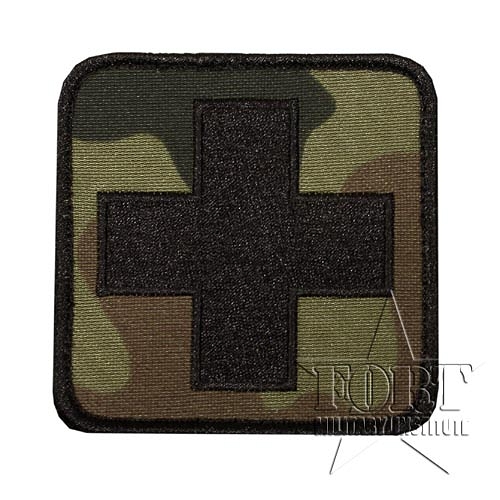 Naszywka na torbę medyczną, duża. Wymiary: 8 x 8 cm.Kamuflaż Wojska Polskiego wz. 93,grafika haftowana czarną nicią.Mocowanie: Na rzep.