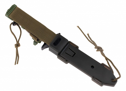 Rękojeść z tworzywa sztucznego. Pochwa: Tworzywo i Cordura.