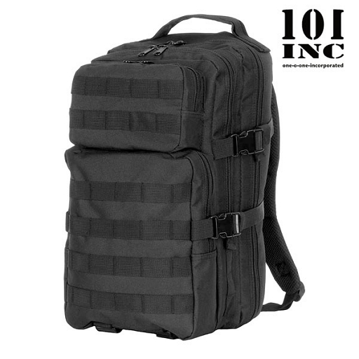 Plecak dwukomorowy. Komora główna o wym. 46 x 24 x 10 cm, druga komora o wym. 40 x 20 x 8 cm. Dwie kieszenie zewnętrzne o wymiarach 27 x 20 x 8 cm i 10 x 19 x 8 cm. cm. Obydwie komory i kieszenie zewnętrzne zapinane są na zamki błyskawiczne. Wewnątrz komór naszyte są dodatkowe kieszonki. Od strony pleców umieszczona jest zapinana na rzep kieszeń zewnętrzna, przystosowana do transportu wkładu camelbak. Szerokie, miękkie, regulowane szelki zapewniają komfort noszenia. Miękka wyściółka pleców. Troki po bokach i na spodzie plecaka umożliwiają dopasowanie go do wymiarów transportowanego ładunku. Troki można wykorzystać również do zamocowania np. karimaty. Po bokach plecaka i na kieszeniach zewnętrznych są taśmy montażowe kompatybilne z systemem ALICE i MOLLE, do zamocowania dodatkowego wyposażenia np. manierki, carga.