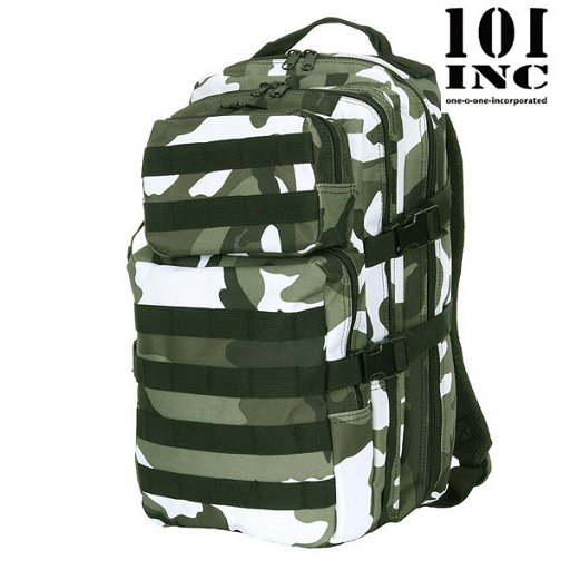 Plecak dwukomorowy. Komora główna o wym. 46 x 24 x 10 cm, druga komora o wym. 40 x 20 x 8 cm. Dwie kieszenie zewnętrzne o wymiarach 27 x 20 x 8 cm i 10 x 19 x 8 cm. cm. Obydwie komory i kieszenie zewnętrzne zapinane są na zamki błyskawiczne. Wewnątrz komór naszyte są dodatkowe kieszonki. Od strony pleców umieszczona jest zapinana na rzep kieszeń zewnętrzna, przystosowana do transportu wkładu camelbak. Szerokie, miękkie, regulowane szelki zapewniają komfort noszenia. Miękka wyściółka pleców. Troki po bokach i na spodzie plecaka umożliwiają dopasowanie go do wymiarów transportowanego ładunku. Troki można wykorzystać również do zamocowania np. karimaty. Po bokach plecaka i na kieszeniach zewnętrznych są taśmy montażowe kompatybilne z systemem ALICE i MOLLE, do zamocowania dodatkowego wyposażenia np. manierki, carga.