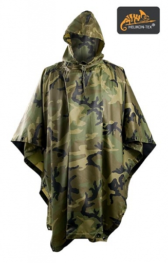Solidne poncho renomowanej firmy Helikon w kamuflażu leśnym woodland.