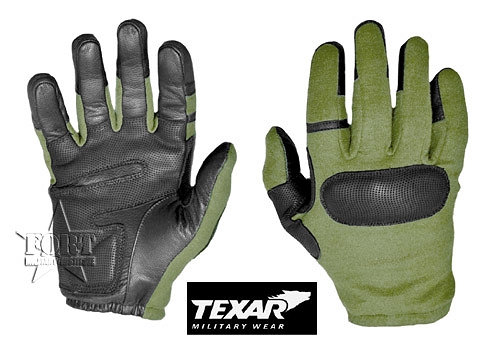 Rękawiczki SWAT Olive firmy Texar wykonane z kevlaru i skóry. Odporne na przecięcia i chroniące przed wysoką temperaturą. Zapewniają właściwe czucie chwytu broni. Dodatkowo wzmacniane. Chronią dłonie przed urazami. Idealne dla strzelców, służb antyterrorystycznych, policji, ochrony, kierowców, na motor, itp.