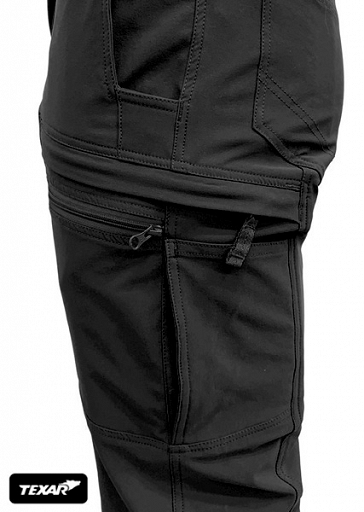 13 wielofunkcyjnych kieszeni. Boczne kieszenie zapinane na suwak.