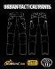 12 kieszeni - dwie na biodrach z wzmocnionymi krawędziami; cztery na udach (dwie większe