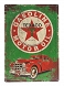 Tablica metalowa ze starą reklamą koncernu naftowego Texaco,stylizowana na używaną.