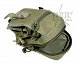 W klapce kieszonka zapinana na suwak. Z tyłu kieszonka. Paski montażowe systemu Molle