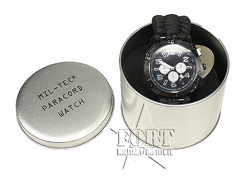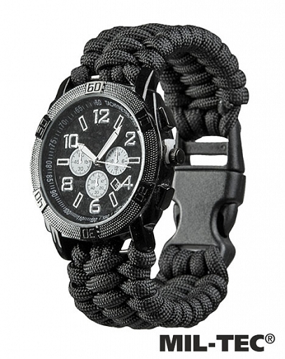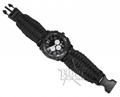 Zegarek kwarcowy, naręczny z paskiem z czarnej linki paracord.