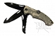 zawiera nóż, scyzoryk, karabińczyk i latarkę taktyczną. Nóż główny posiada